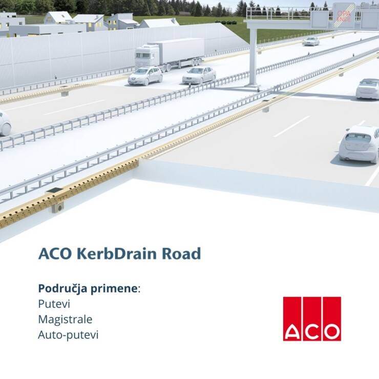 ACO KerbDrain Road predstavlja jednostavan i veoma efikasan sistem odvodnjavanja puteva i magistrala. Sistem se sastoji od prefabrikovanih elemenata koji omogućavaju jednostavno izvođenje odvodnjavanja. Štedi i na građevinskom materijalu (nepotreban je betonski ivičnjak) i na vremenu ugradnje.