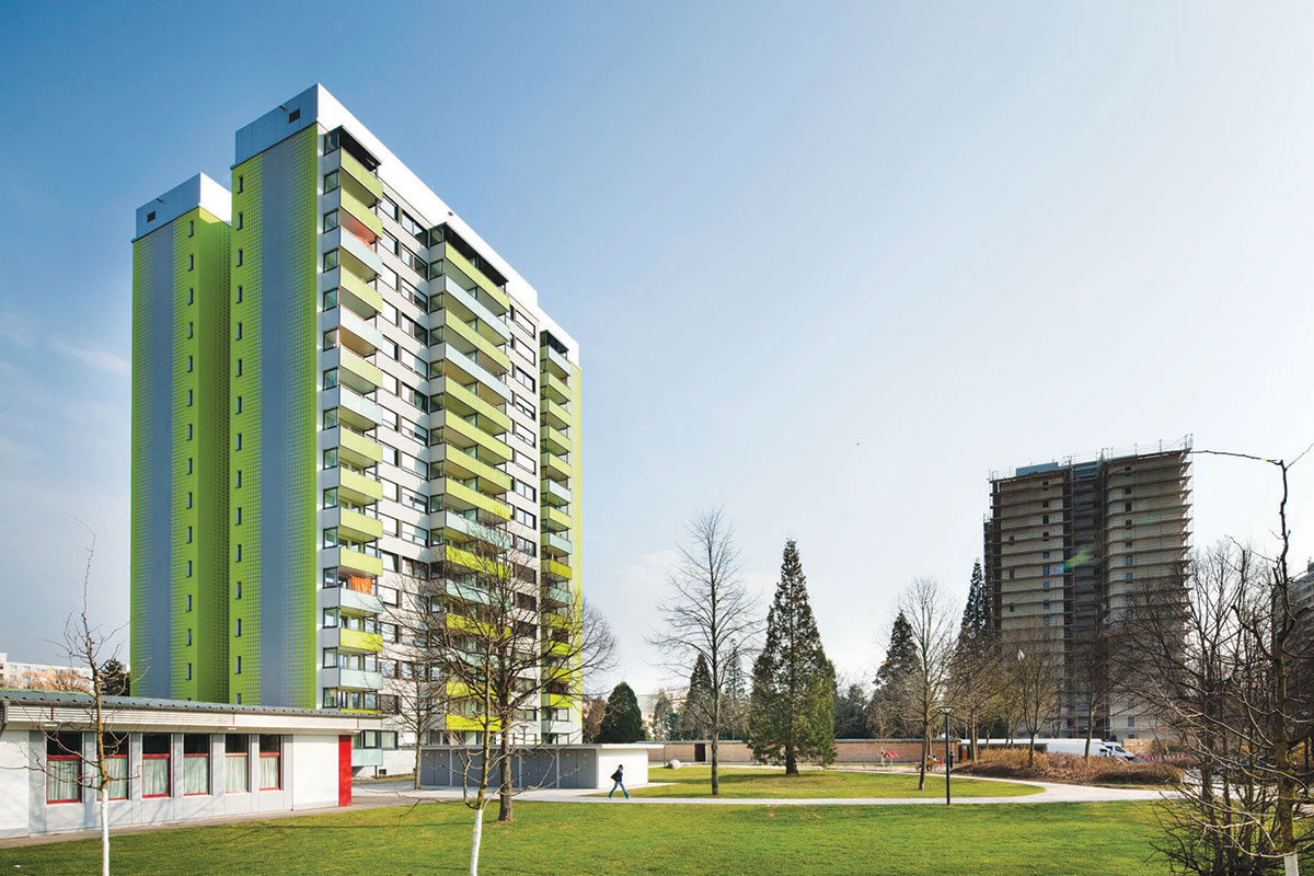 Prvi projekti sanacije izvedeni su 2009. godine. Dve identične stambene višespratnice sanirane su do nivoa pasivne kuće sa istim komponentama, ali različitim arhitektonskim rešenjem osnova i fasade: Bugginger Straße 50 (slika 2) i Hochhaus Binzengrün 9 (slika 3). Program je sproveden uz pomoć države i povoljnih kredita, a planirano je da će biti otplaćen povećanom cenom izdavanja stambenog kvadrata u ovoj četvrti.