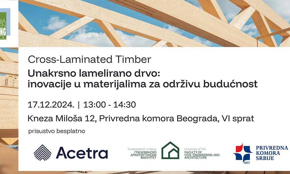 U Privrednoj komori Beograda, na lokaciji Kneza Miloša 12, VI sprat, 17. decembra u periodu od 13:00 do 14:30 časova će se održati predavanje „Unakrsno lamelirano...